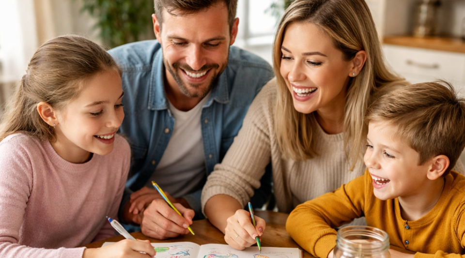 A relaxed family spending quality time together at home, representing reflection, planning and starting the year with clarity. Used to illustrate the importance of taking time for a simple financial reset and shared conversations about the future.