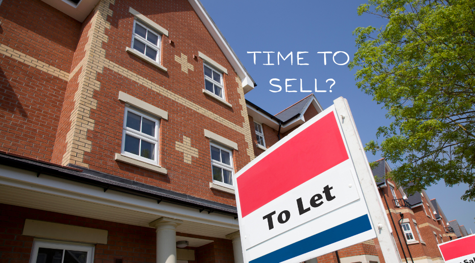 A modern UK buy-to-let property development with a prominent ‘To Let’ sign and the words ‘Time to Sell?’ overlaid against a blue sky. The image reflects the growing dilemma facing landlords in 2026 as higher interest rates, tighter regulation, and upcoming tax changes prompt many to reassess whether to retain or sell their property portfolios